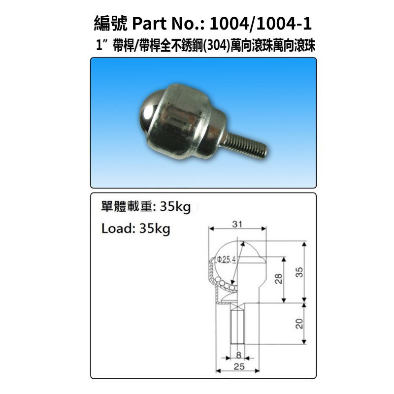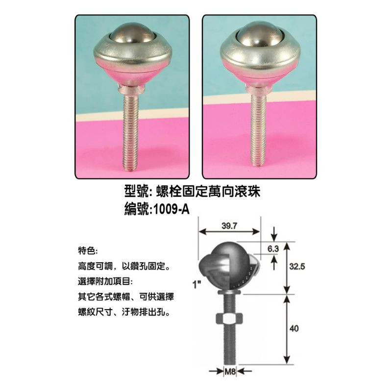 1"帶桿、萬向滾珠