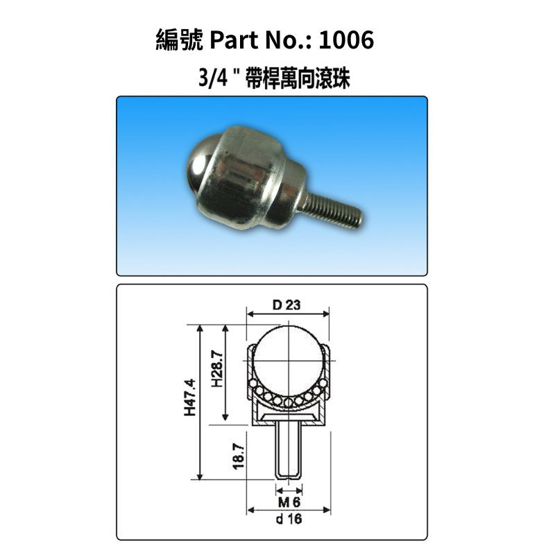 3/4"帶桿萬向滾珠