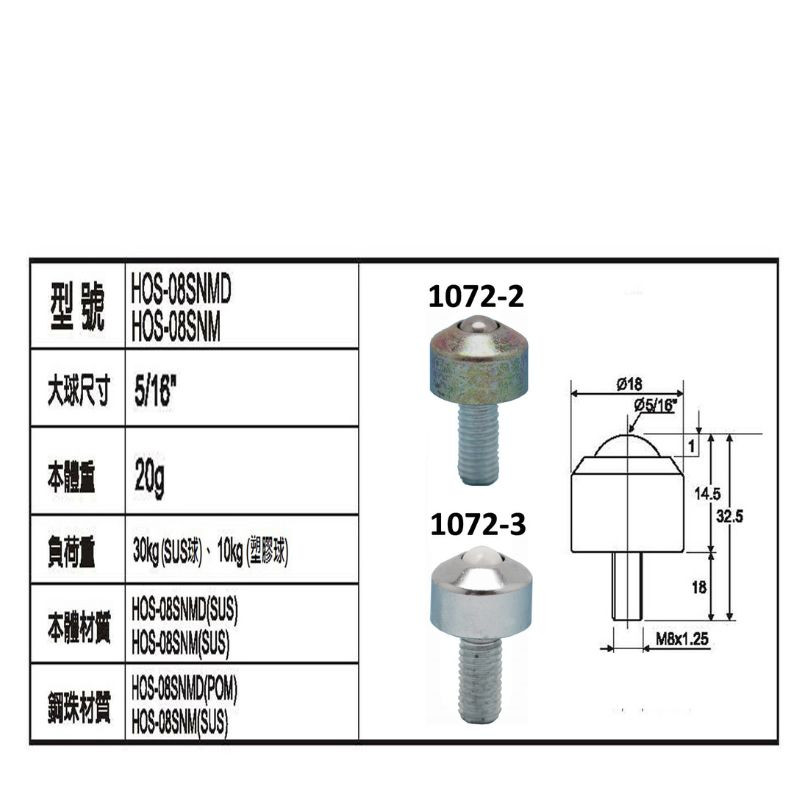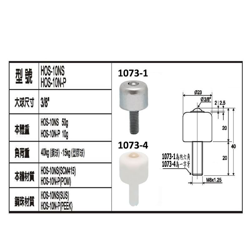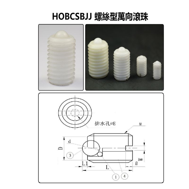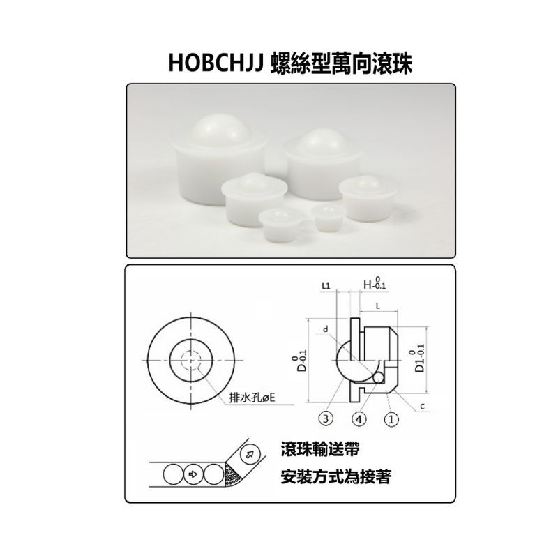 HOBCHN12 HOBCHN16, HOBCHN19, HOBCHN25, HOBCHN31螺絲型萬向滾珠