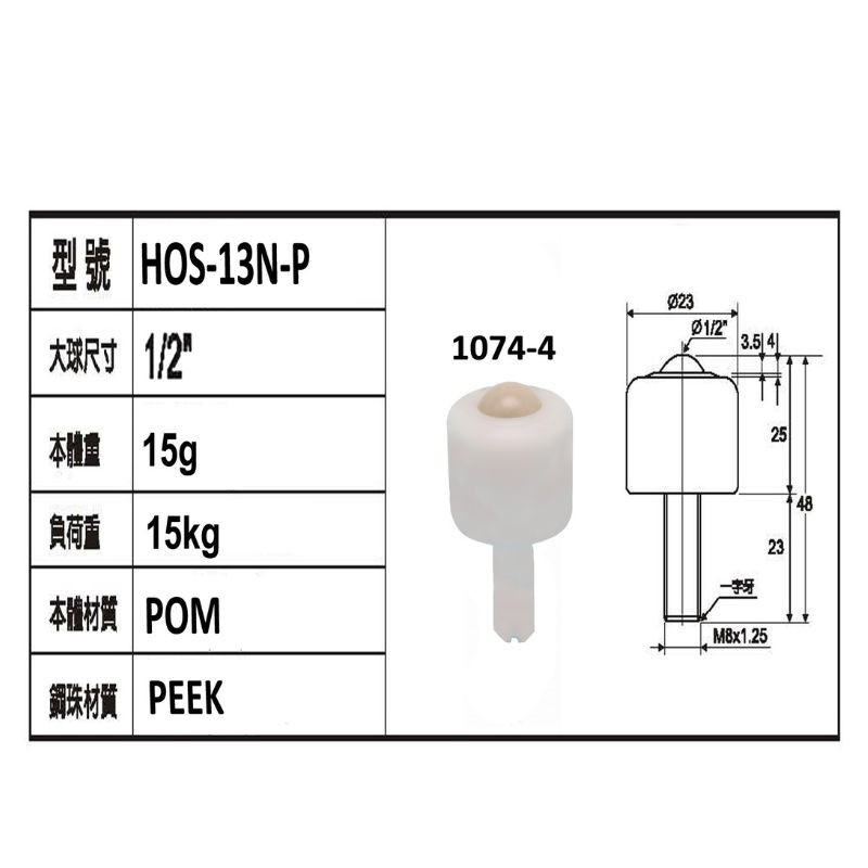 HOP-16W, HOP-16B, HOP-16WP 萬向滾珠