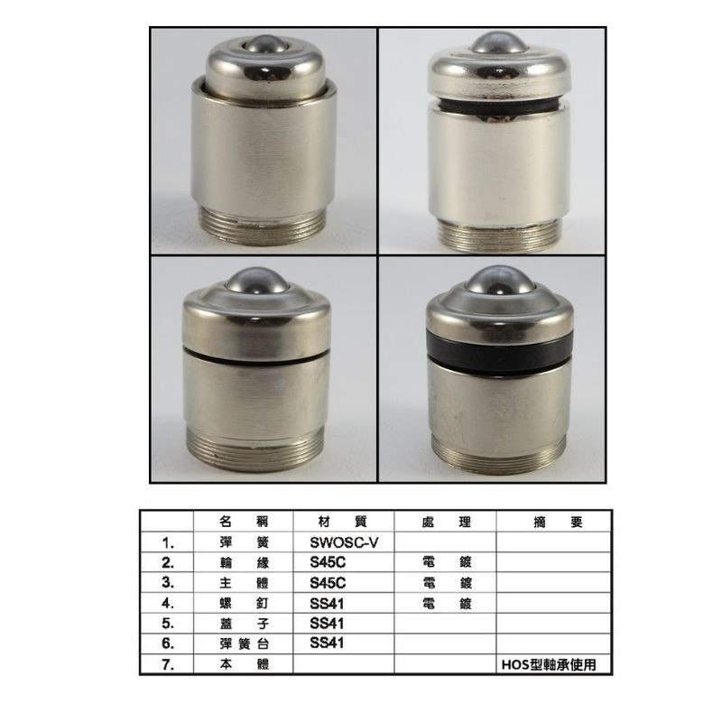 HOS-10B, HOS-13B, HOS-19B, HOS-25B, HOS-38B型沖壓機或注塑機用彈簧萬向滾珠