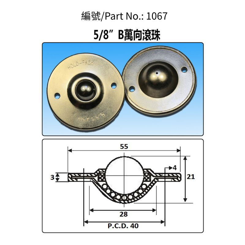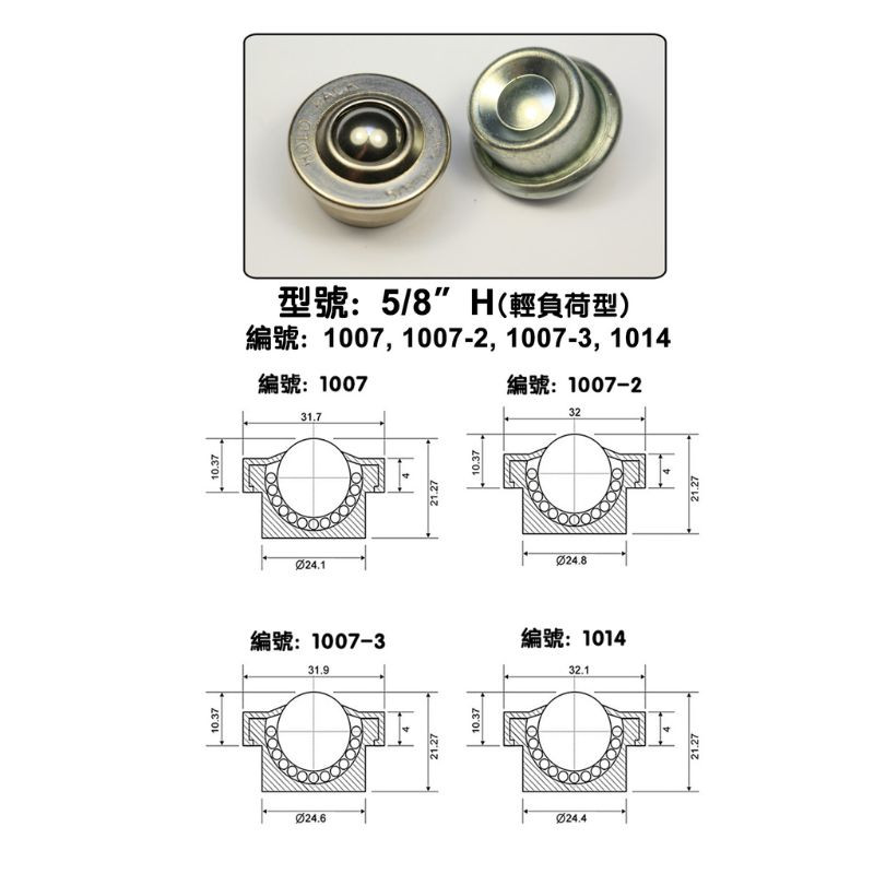 5/8"B型碟形萬向滾珠, 5/8"BU型碟形萬向滾珠 -僅可向上使用