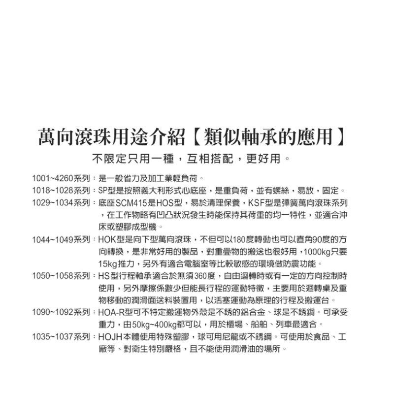 HOK-19, HOK22, HOK25, HOK38, HOK51, HOK-76 向下型萬向滾珠