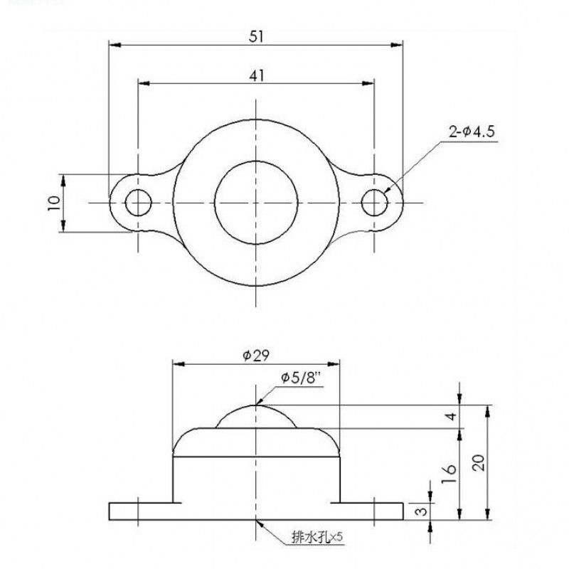 *HOP-16W, HOP-16B, HOP-16WP 萬向滾珠凸緣上有兩個4.5mm的安裝孔,適合球朝上的應用。