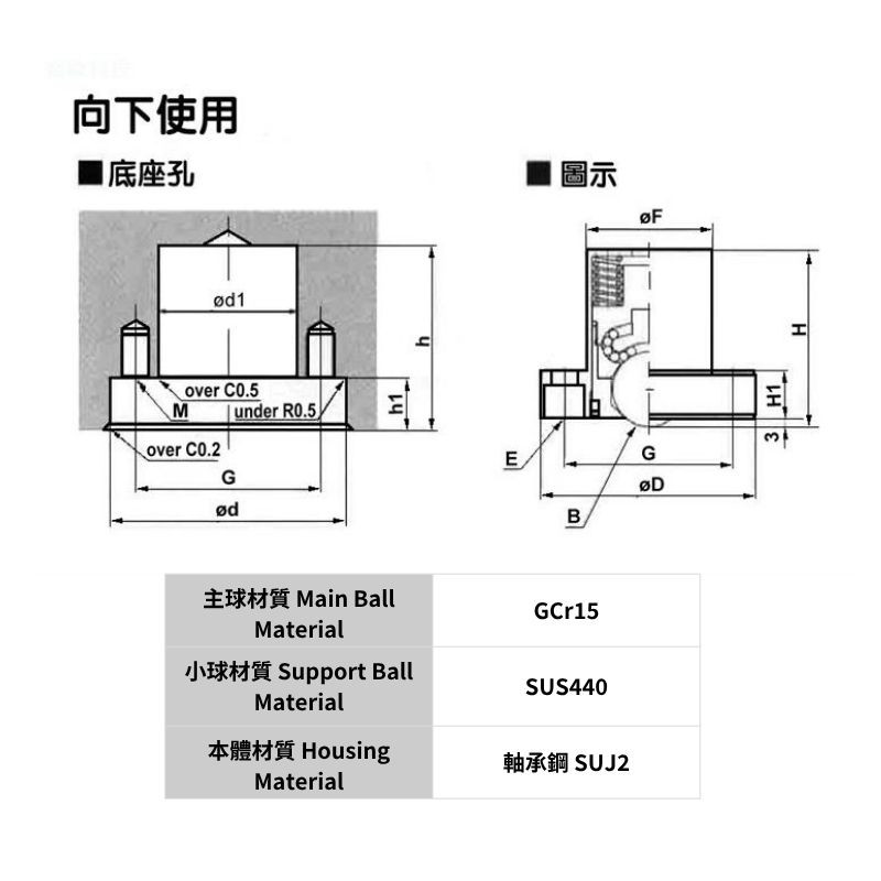 HOC-8DS 凸緣 彈簧式舉模器滾珠 |