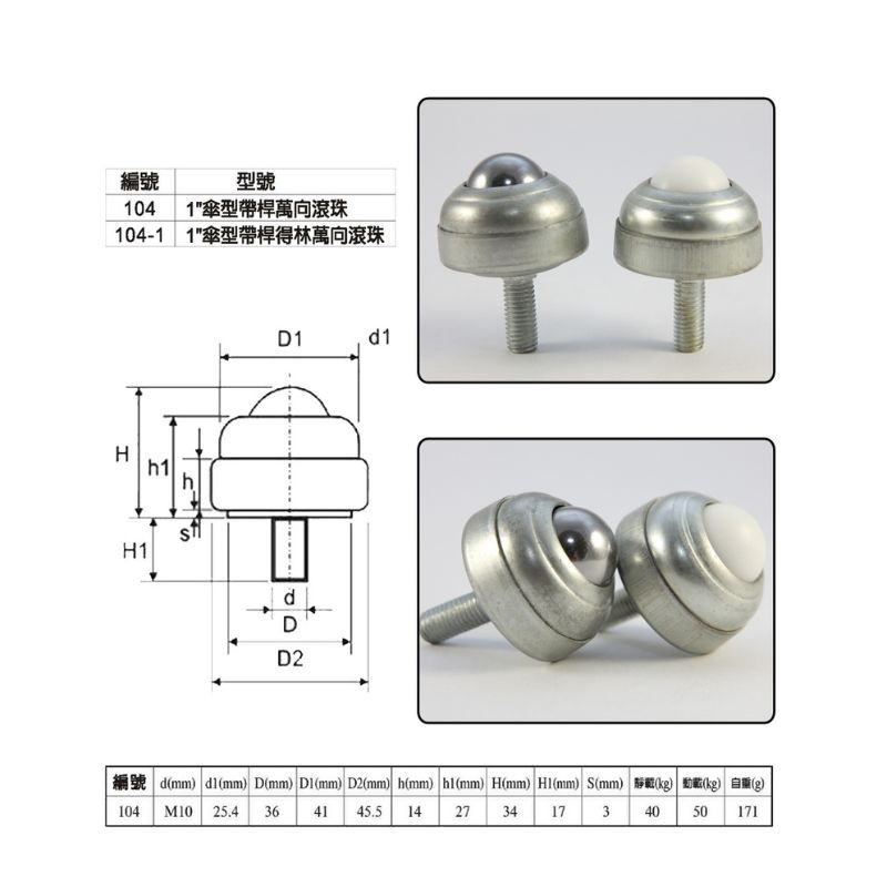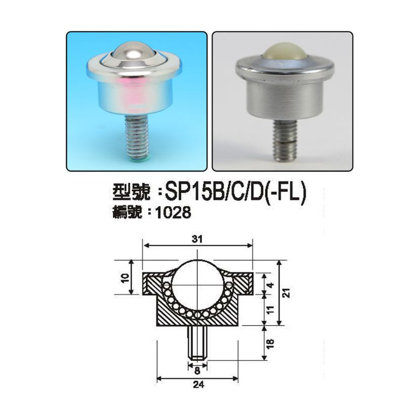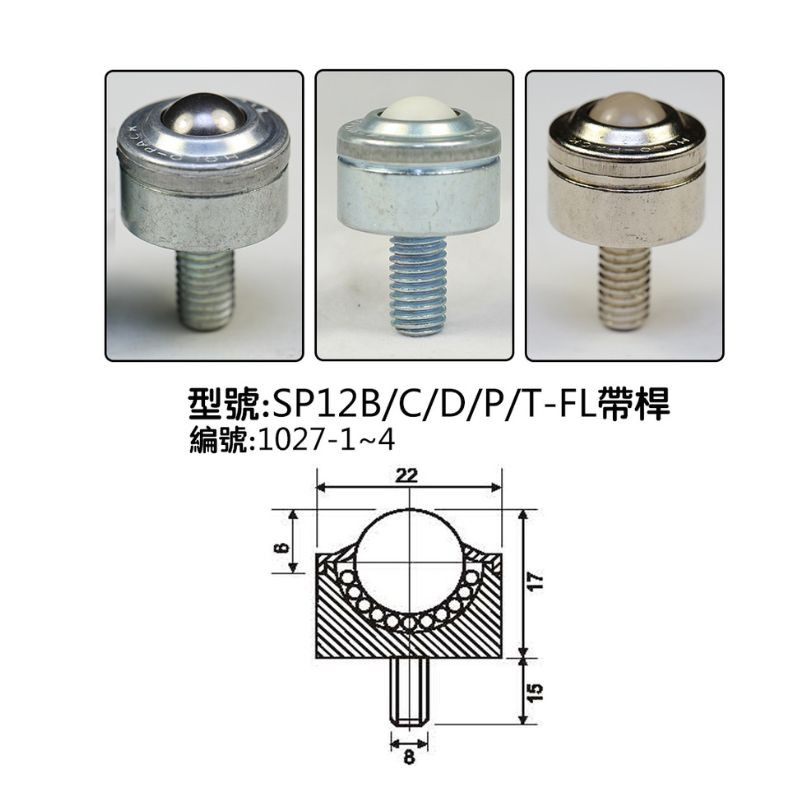 SP12B-FL、SP15B-FL、1"傘型帶桿式萬向滾珠