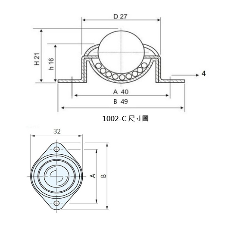 5/8"A球POM,殼SUS304萬向滾珠 |