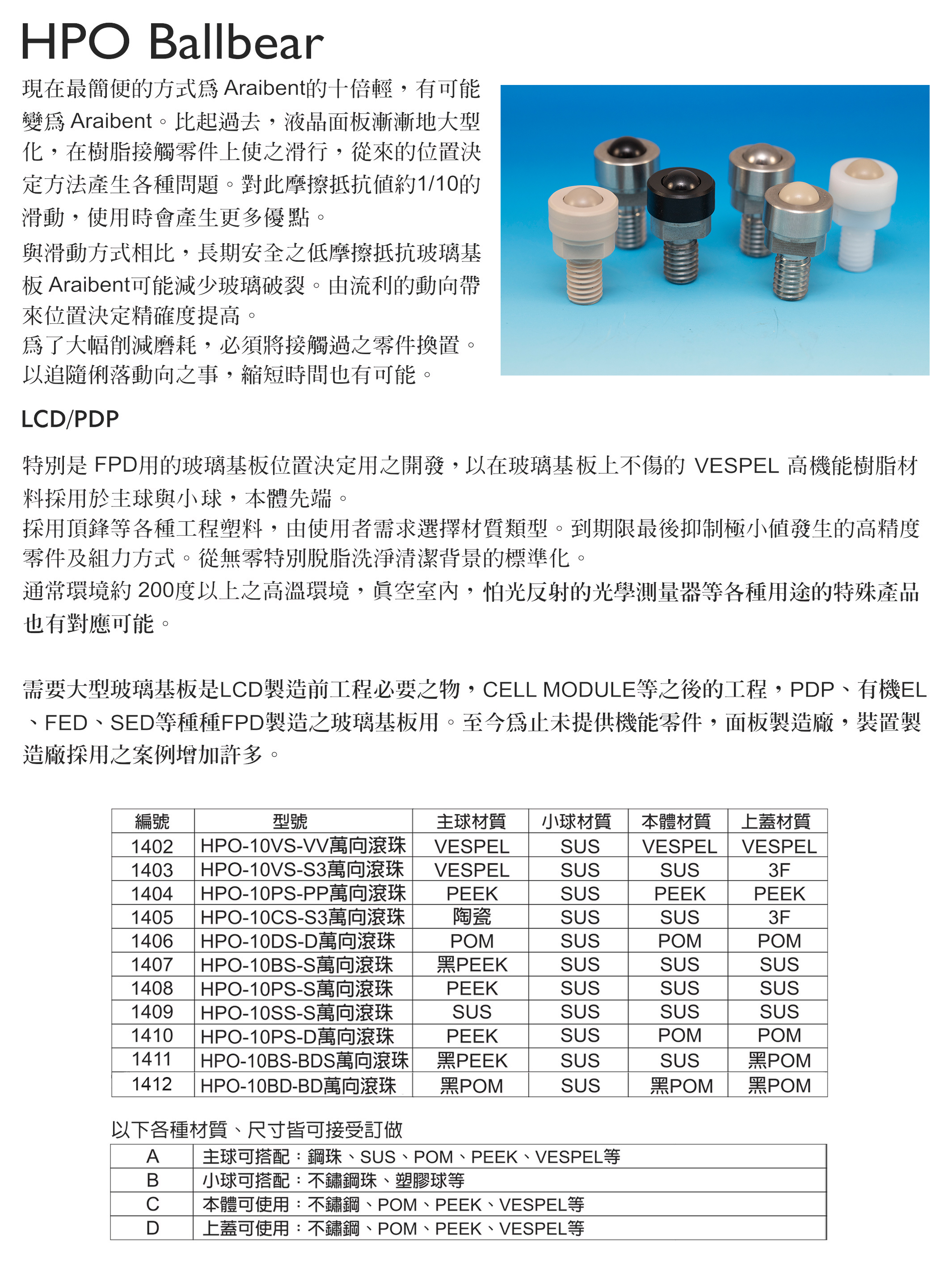 HPO-10VS-VV~HPO-10BD-BD半導體專用萬向滾珠