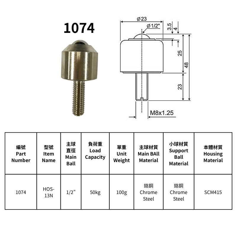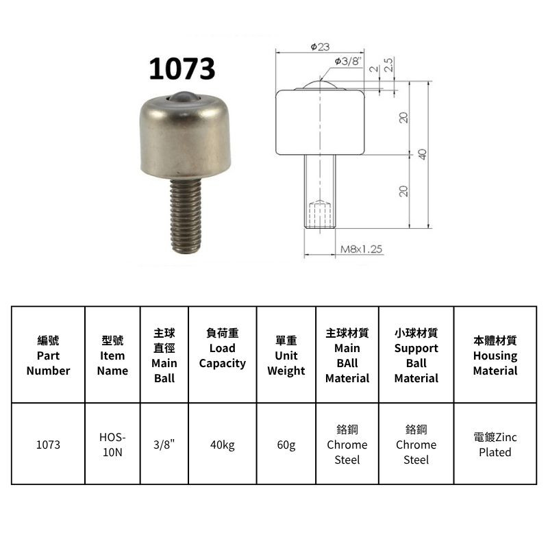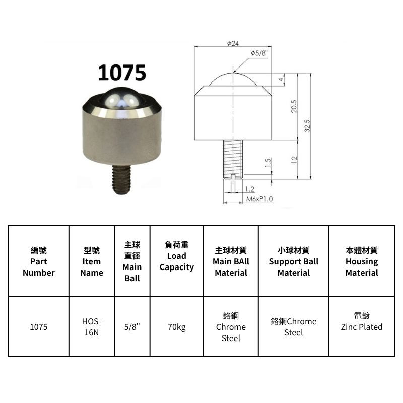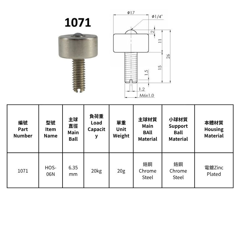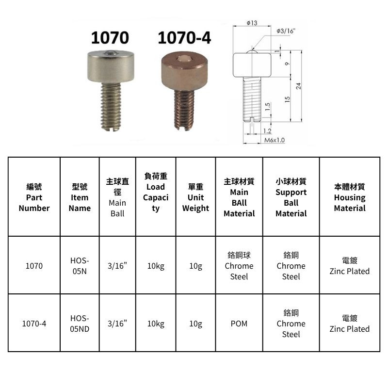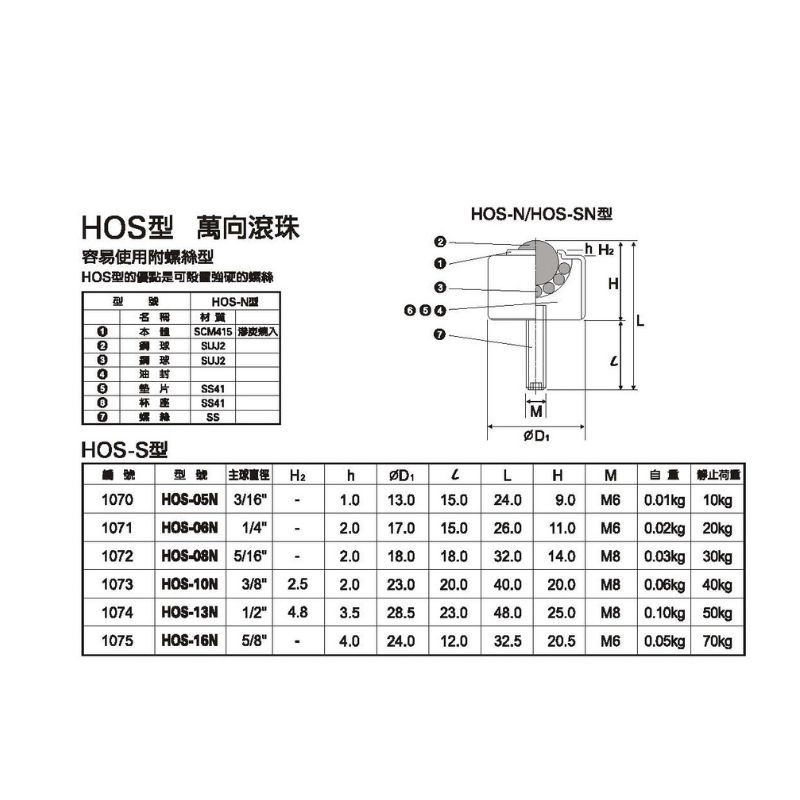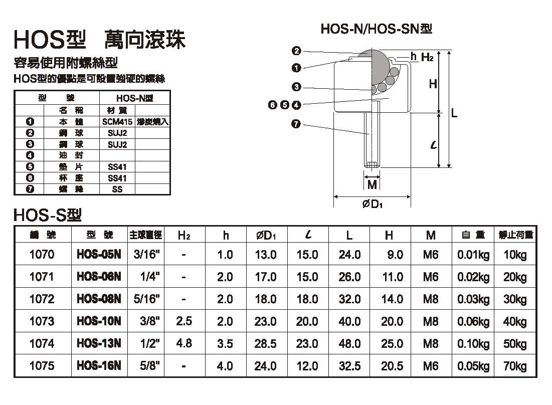 HOS-05N/HOS-05ND, HOS-06N, HOS-08N/HOS-08NS, HOS-10N, HOS-13N, HOS-16N型萬向滾珠