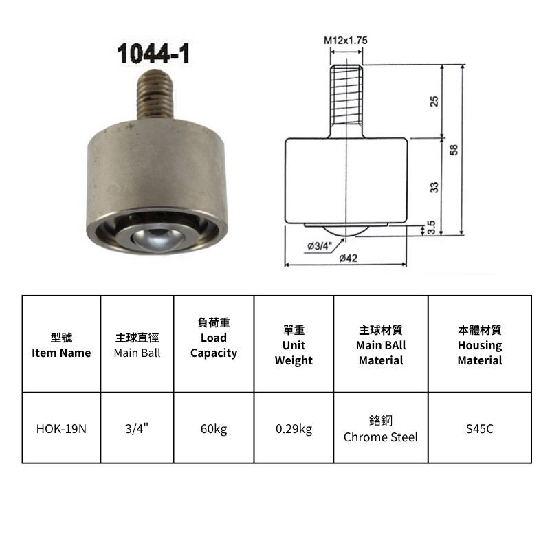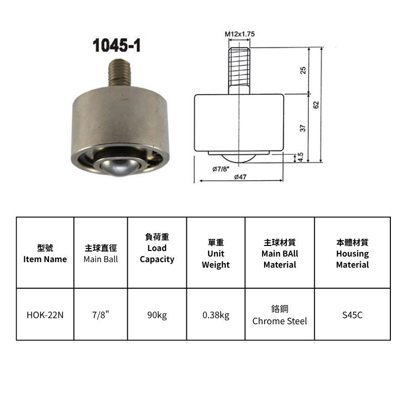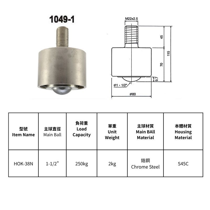 HOK-19N, HOK-22N, HOK-25N, HOK-38N, HOK-51N萬向滾珠