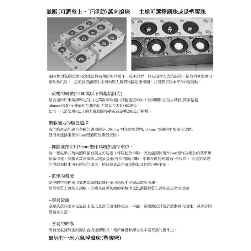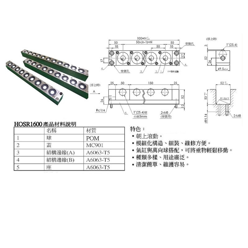 HOSR1600氣壓浮動式萬向滾珠(POM)特色: