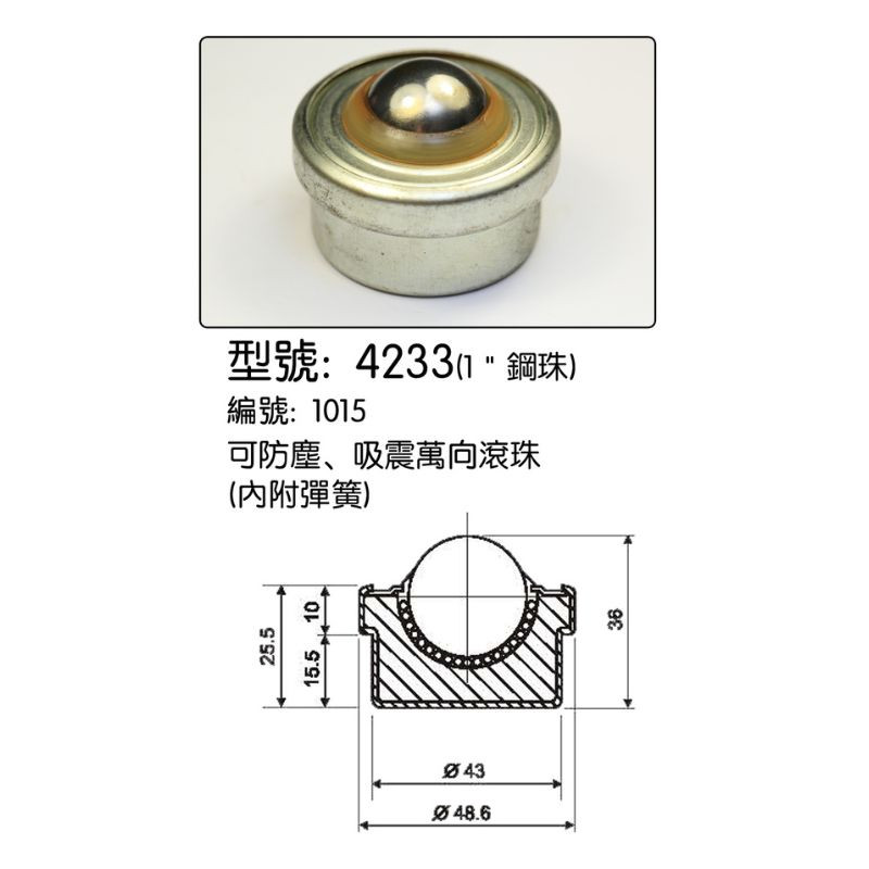 *4233防塵吸震萬向滾珠: 內附彈簧,嵌入式。