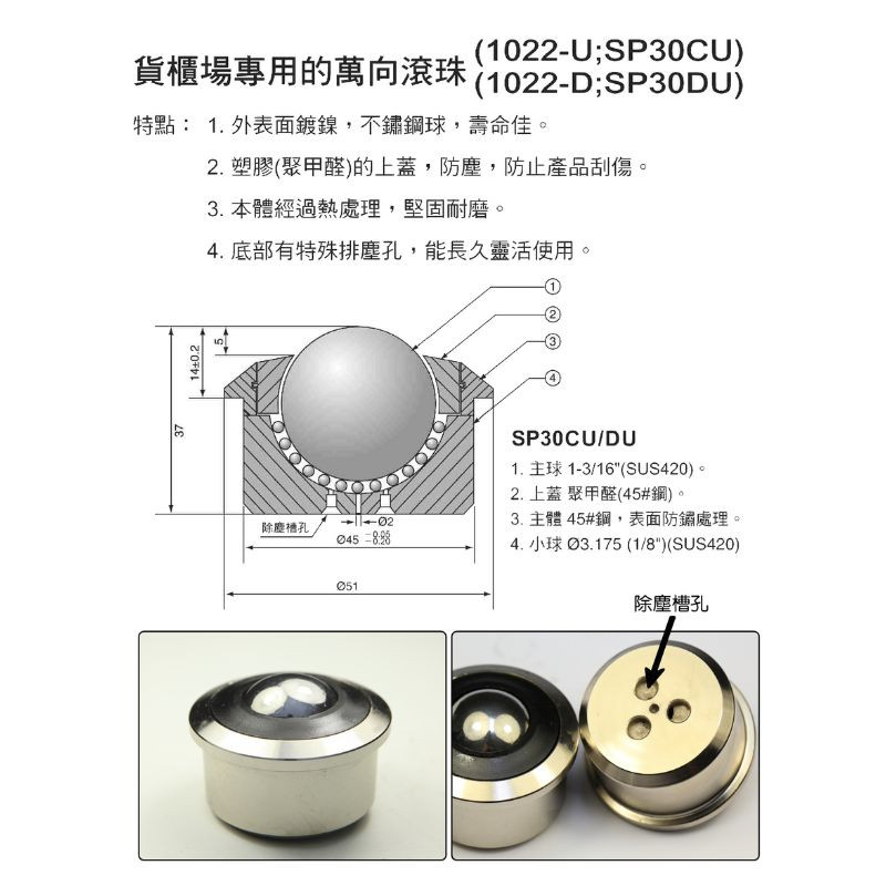 * SP30CU/SP30DU防塵貨櫃場專用萬向滾珠適合球朝上的應用。