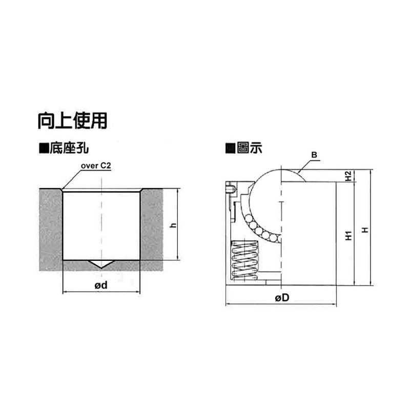 *HODU100,HODU200滾珠彈簧式舉模器嵌入式安裝,適合球朝上的應用。