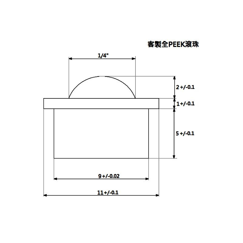 客製全PEEK(球:1/4",外徑:11mm)嵌入式萬向滾珠