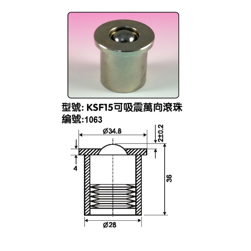 KSF15可吸震 萬向滾珠 (內附彈簧) |
