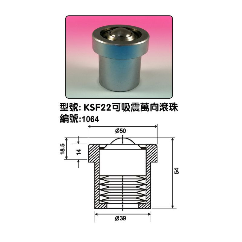 KSF22可吸震 萬向滾珠 (內附彈簧) |