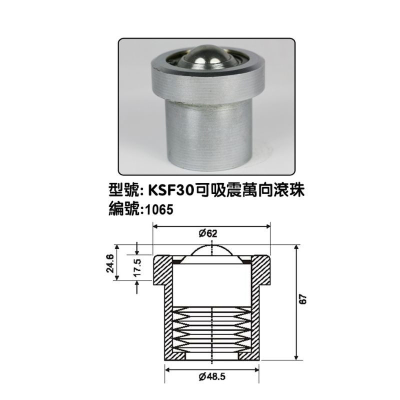 KSF30可吸震 萬向滾珠 (內附彈簧) |