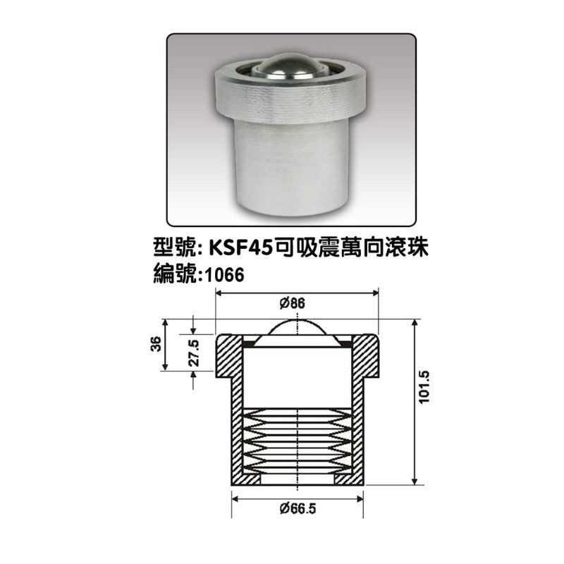 KSF45可吸震 萬向滾珠 (內附彈簧) |