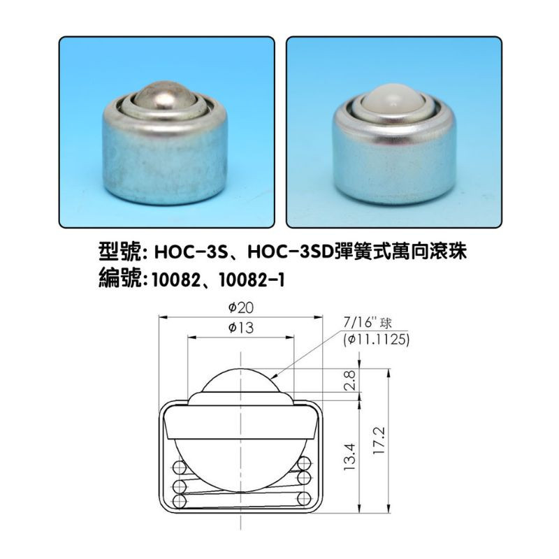 HOC-3S,HOC-3SD, HOC-5S,HOC-5SD 彈簧式萬向滾珠
