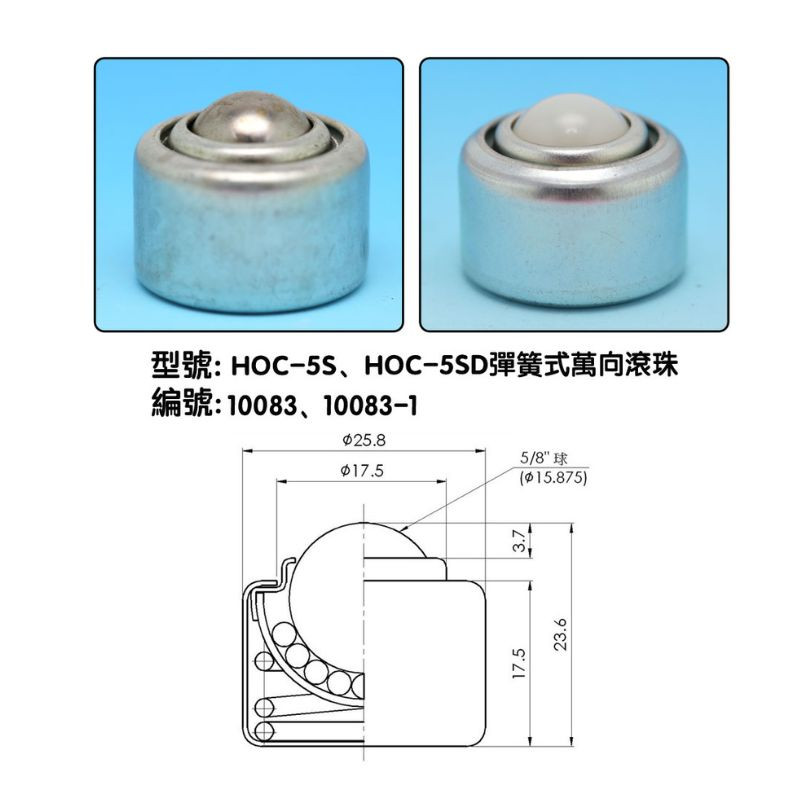 HOC-5S、HOC-5SD彈簧式萬向滾珠產品介紹: