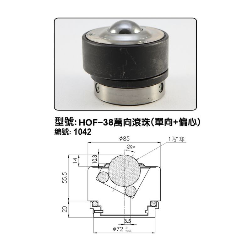 HOF-38型活動型萬向滾珠(單向+偏心)產品介紹: