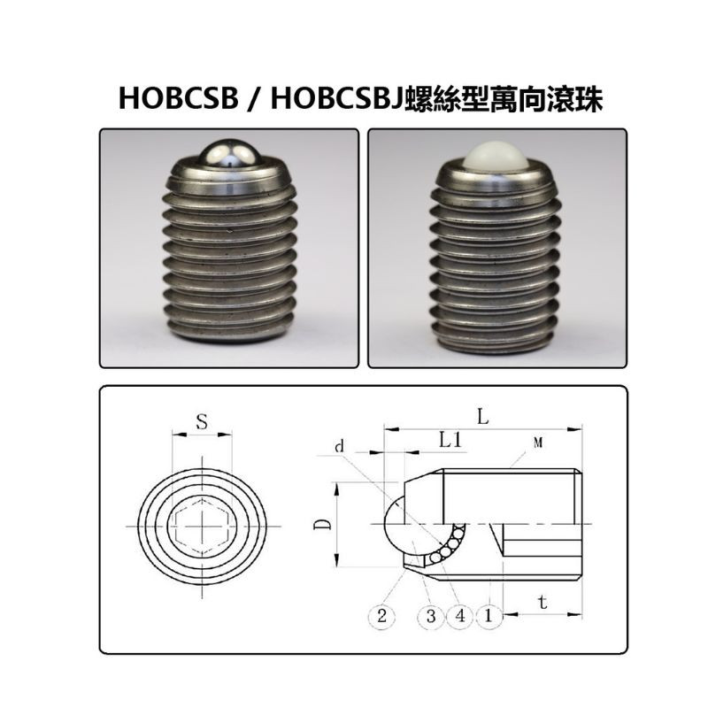 HOBCSB HOBCSBJ 螺絲型萬向滾珠 |