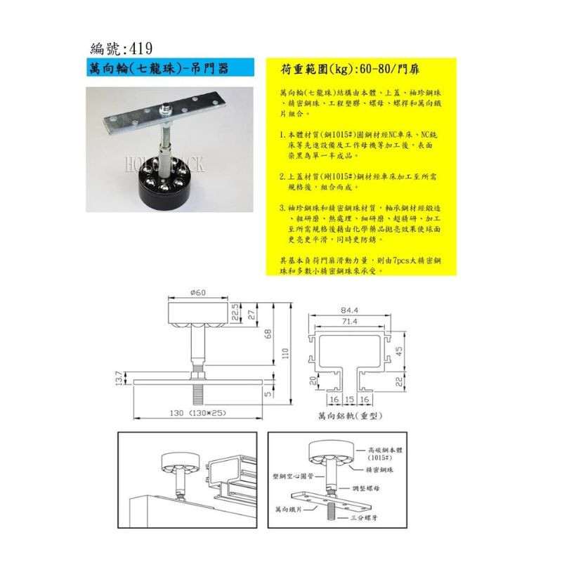 吊門器萬向輪
