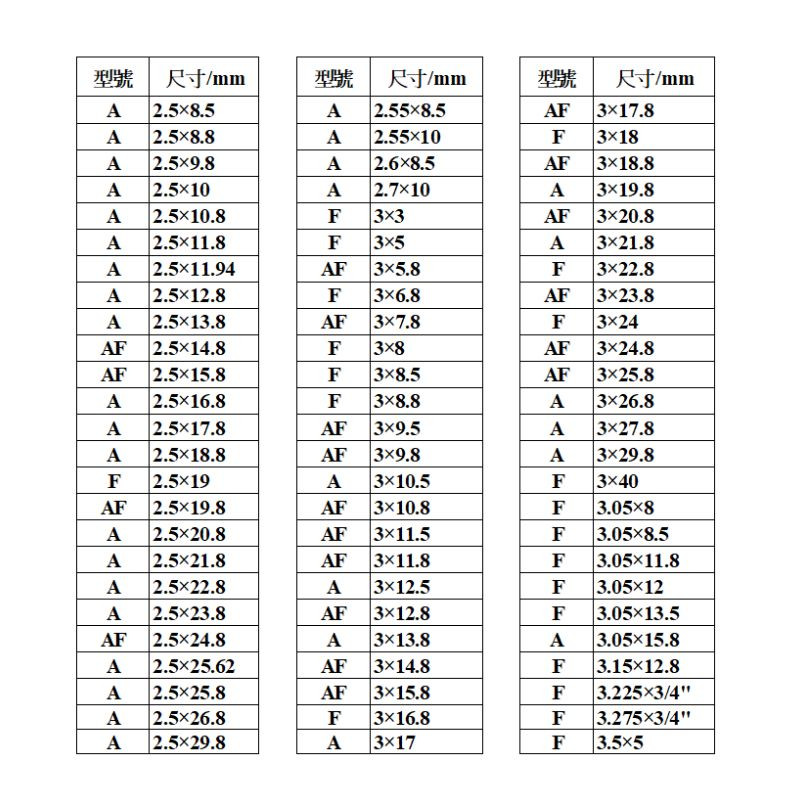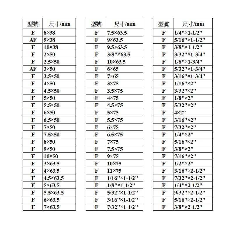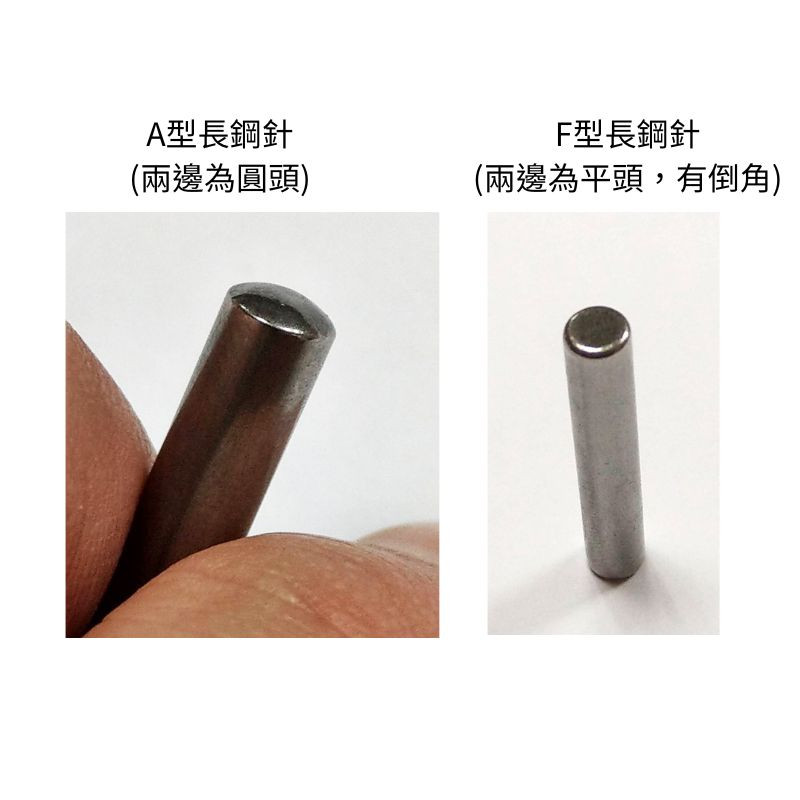 材質: SUJ2(鉻鋼) A型鋼針為兩邊圓頭 F型鋼針為兩邊平頭有倒角 F(H)型為有孔 等級為G3