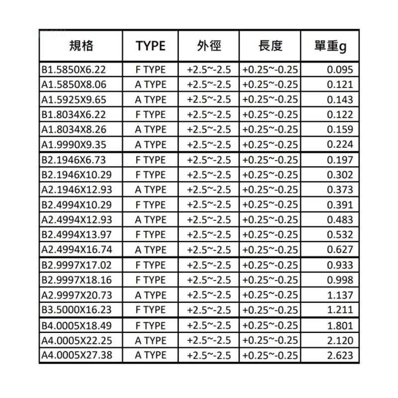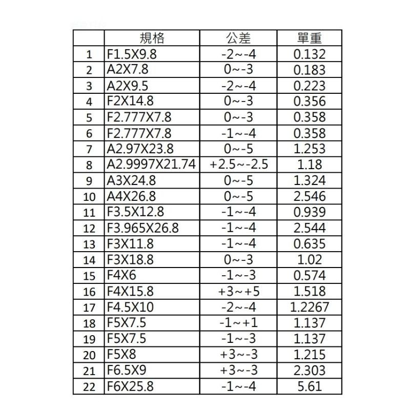 6) ø2.4994mm X 長度10.29mm~16.74mm