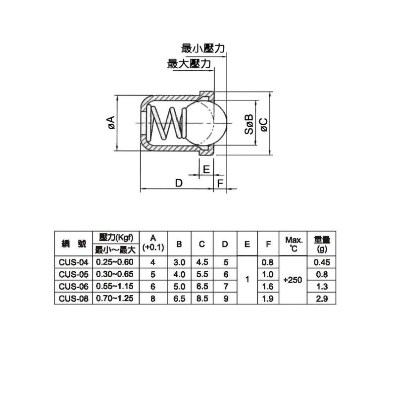 CUS型銅體不鏽鋼球定位珠