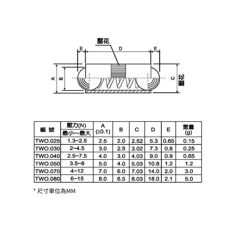 編號:TWO.025, TWO.030, TWO.040, TWO.050, TWO.070, TWO.080