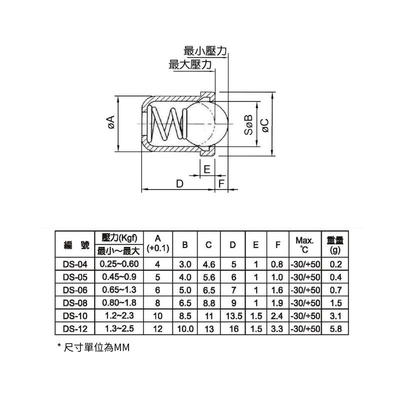 DS型: 珠子為不鏽鋼 彈簧為不鏽鋼 本體為藍色得林塑膠