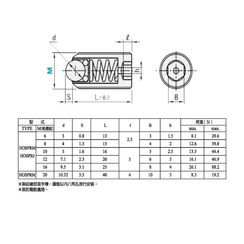 HOBPRM不鏽鋼球/HOBPRJ POM球滾輪型內六角定位珠