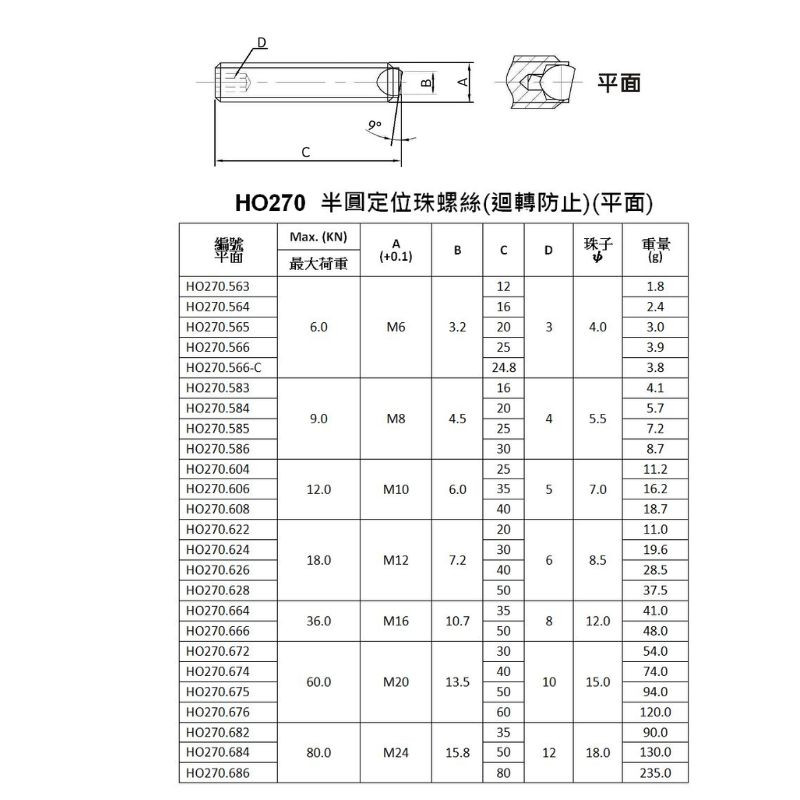 HO270平面半圓定位珠螺絲(迴轉防止)