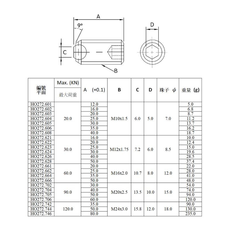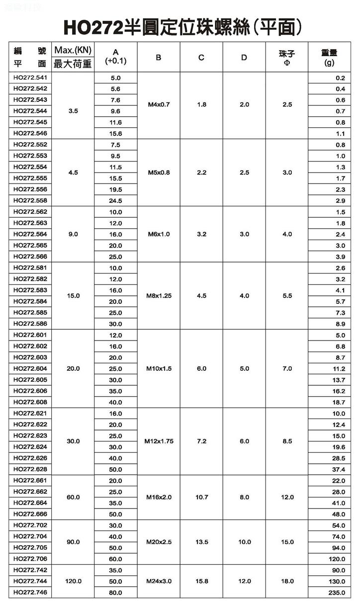 HO272平面半圓定位珠螺絲