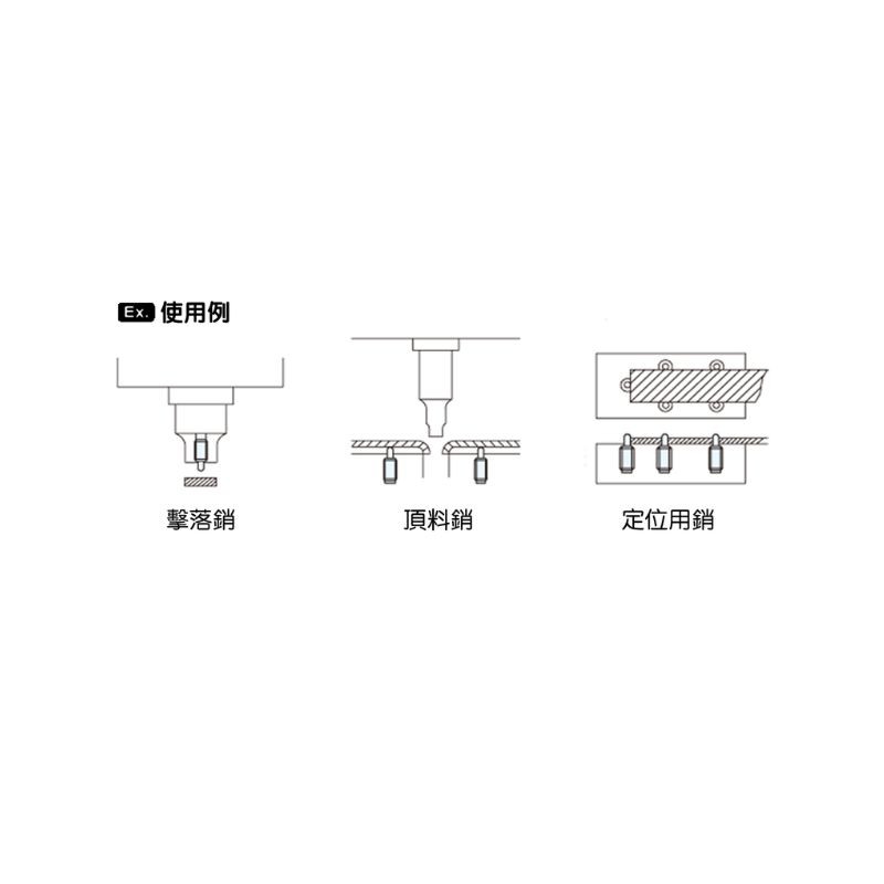 用途: 擊落梢、頂料梢、定位用梢。