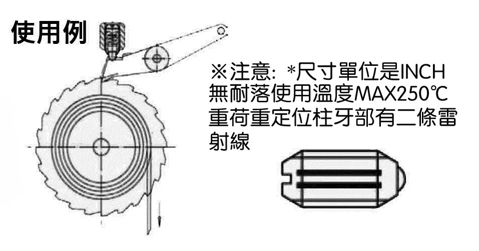 重荷重定位柱牙部有兩條雷射線