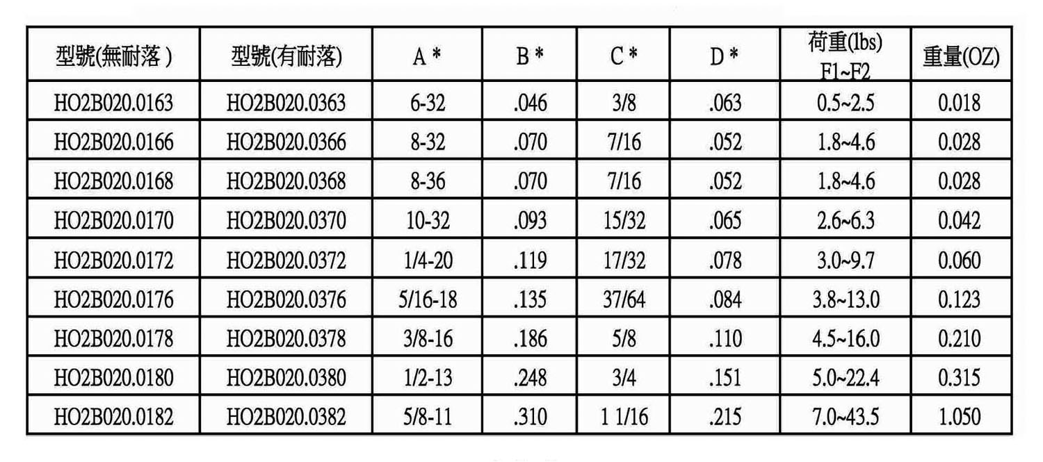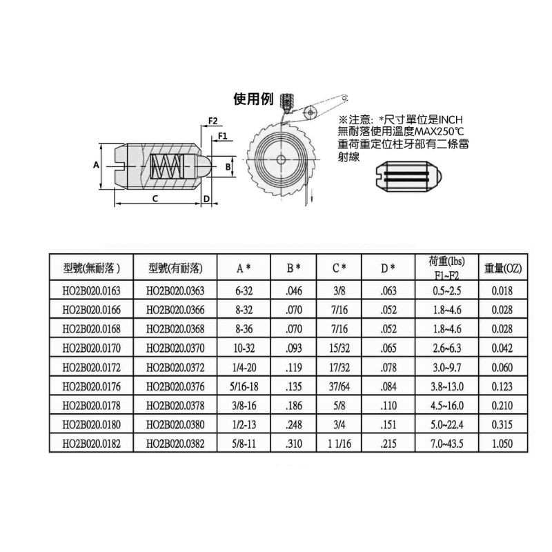 * HO2B020 定位柱(重荷重)(不銹鋼)(英吋)尺寸單位為INCH.