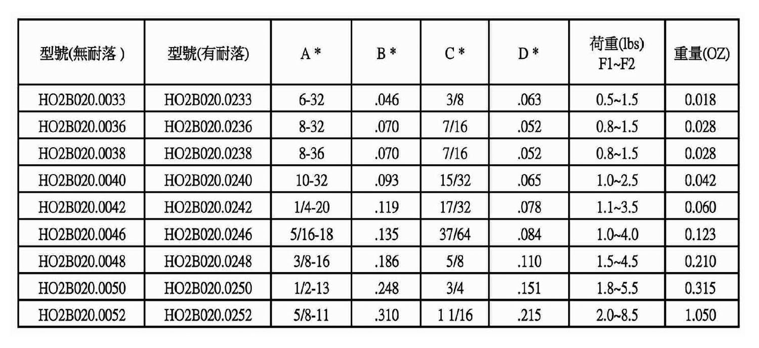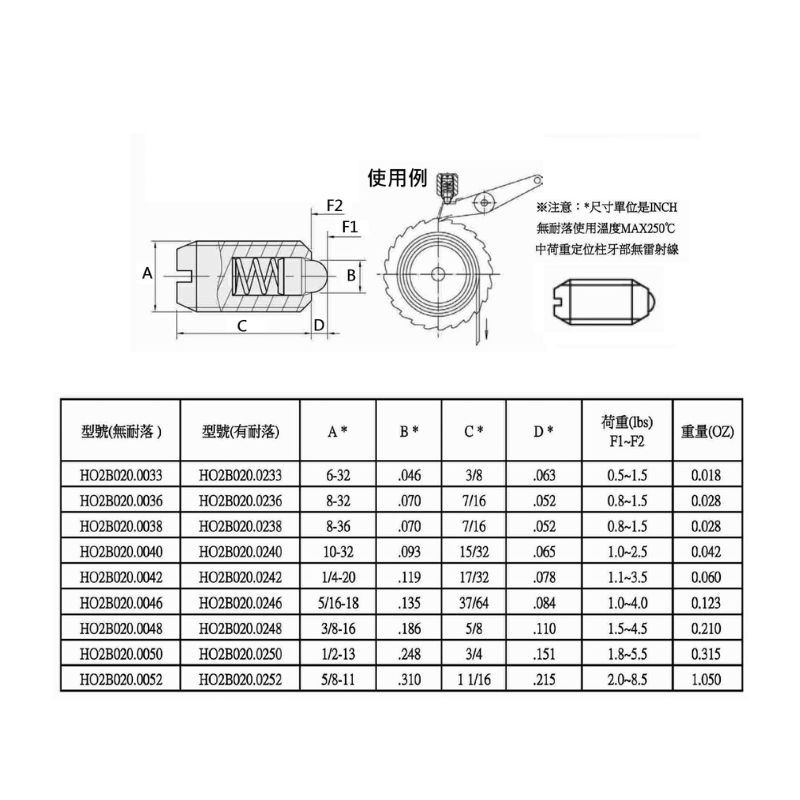 HO2B020中荷重定位柱(英吋) 彈簧材質 |