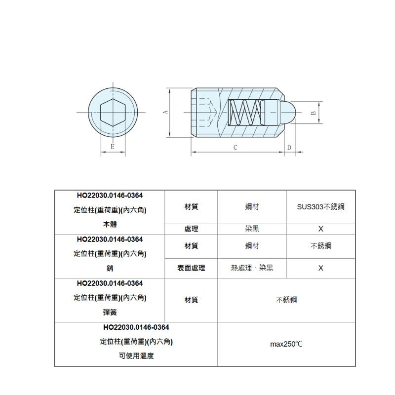 HO22030.0146-0364定位柱(重荷重)(內六角)