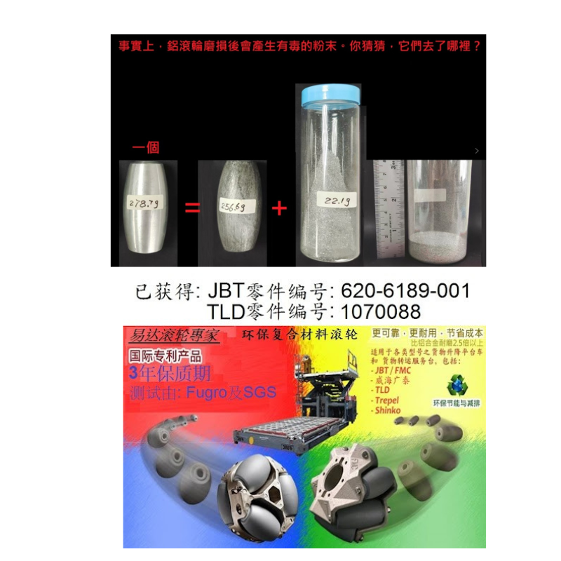 複合材料滾輪 相對原本的鋁滾輪,比較安全、健康、無毒